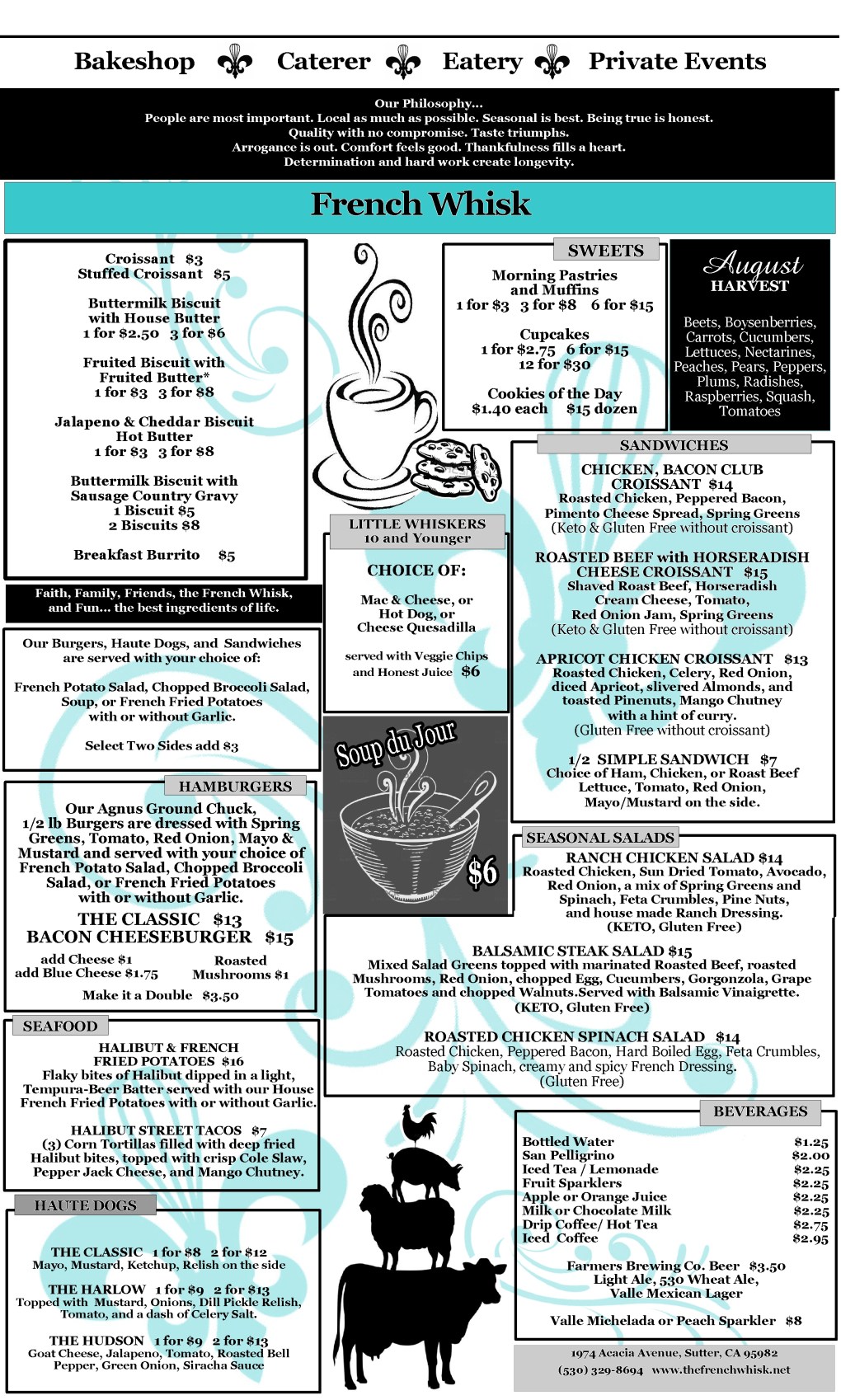 In putting our menu together for August, we kept a few of the favorites so far, and, of course, we’ve included some of August’s tastiest treats and that includes succulent Halibut. We hope you enjoy it. We can’t wait to serve you.