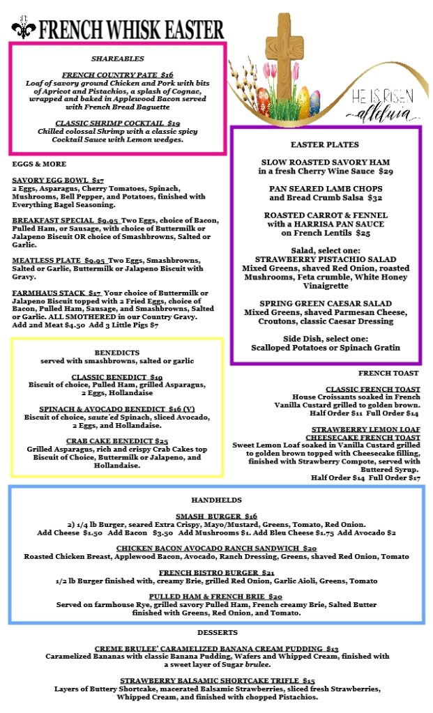 And, thank you Jesus for that! We love Easter. We hope you do too. We are excited to share our Easter Sunday 2024 menu with you. We’d be honored to serve you.